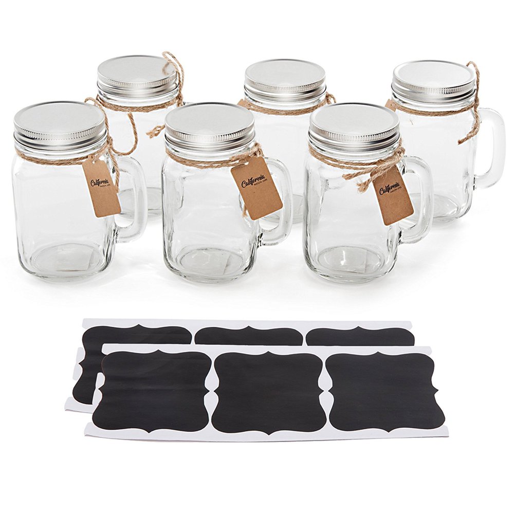 Personalized Mason Jars Bulk or Wholesale, 1.25 oz. to 16 oz Take your pick from our all-exciting range of 1.25 oz. personalized mason jars to 16 oz. personalized mason jar mugs to fill your home, restaurant, and special occasions with delicious treats and drinks, to contain your irresistible food gifts, to authenticate the theme of your party, to organize your space, and so much more. Mason Jar 16 Oz. Glass Mugs with Handle and Lid Set Of 4 ... 6pk California Home Goods 16oz Glass Mason Jar Mugs w/ Lids & Chalkboard Labels New $19.99 $30.00 33% off Free shipping Seller 99.2% positive Dimple Stein Beer Mug - 20 OZ (4 Pack) New $25.49 Free shipping Almost gone 12pk Ball Mason Jar Regular Mouth Straw Lids (12 Lids 12 Straws) Red,Blue,Purple New $12.99 Free shipping Top Rated Plus 86 sold Mason Jar Glass Mugs 16 Oz. (Chalkboard Label) (2 pack) Mason Jar Glass Mugs 16 Oz. (Chalkboard Label) (2 pack) Brand: Greenbrier International Currently unavailable. We don't know when or if this item will be back in stock. Set of two durable mason glasses Designed with a smooth, curved handle and classic design Ideal for serving water, iced tea, soda, beer and more 16.5-ounce capacity