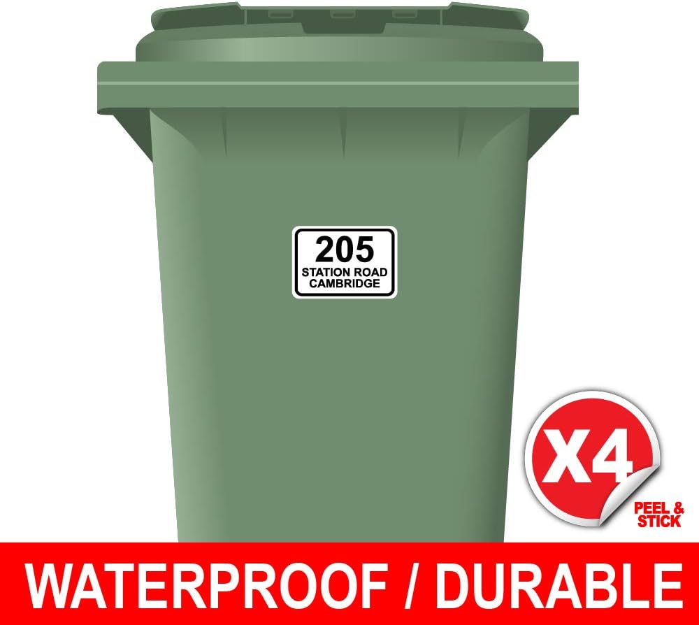 Address labels for wheelie bins. Wheelie bin address stickers 6 pack - House Nameplate Never lose another wheelie bin or recycling bin again! These simple vinyl, self-adhesive labels are personalised with your address. Simply peel off the backing sheet and apply for a long lasting, smart label for your waste bins. Packs of 6 or single labels are available. 150mm by 200mm Labels will be for one address (not mixed). Personalised Wheelie Bin Number Stickers - UK Sign Shop Our wheelie bin numbers & labels give your dustbin that extra lease of life. Our stickers for bins are durable and suitable for all weathers. Made in the UK. Public & trade. Open Live Chat. Order over the phone. For the Home For Business. The UK's Favourite Signage Company. Help; Enquiries/Order: 01795 505850; Amazon.co.uk: wheelie bin labels 1-48 of 322 results for "wheelie bin labels" RESULTS Price and other details may vary based on product size and colour. A5 [4 Pack] x Personalised Wheelie Bin Sticker/Vinyl Labels with House Number & Street Name 1,251 £449 (£1.12/Count) Get it Tuesday, Sep 6 FREE Delivery Small Business Personalise it Address Labels - Wheelie Rubbish Signs Address Labels Address Labels Sort by Bin Address Label / House Name Vinyl Bin Address Sticker - 250mm x 150mm No more frustration of your wheelie bin going walkabout on collec… £4.00 Add to Basket eCommerce by CubeCart