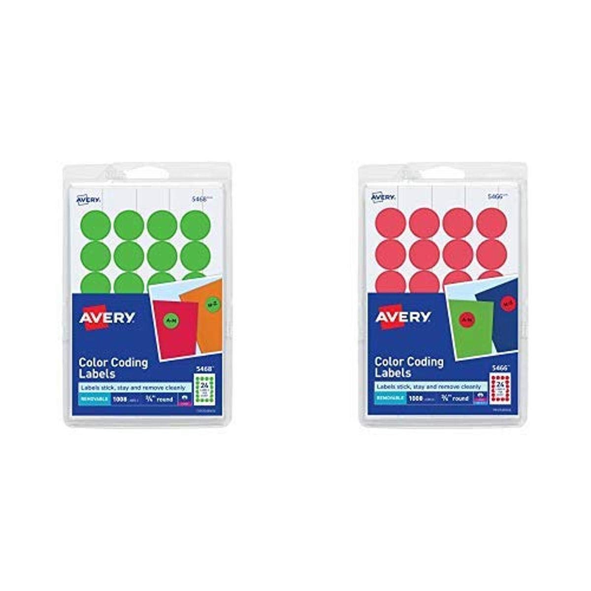 Avery Print/Write Self-Adhesive Removable Labels, 0.75 Inch Diameter, Green Neon, 1008 per Pack (5468) and Avery Print/Write Self-Adhesive Removable ...