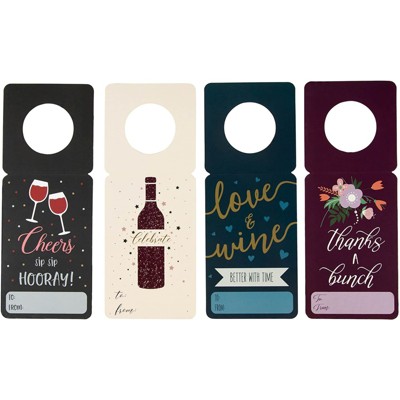 100-Pack Wine Gift Tags, Wine Bottle Hang Tag, Gifts Labels for Decor, All Occasion, Greeting, Birthday, Wedding & Events, 4 Joyful Wine Pun Designs